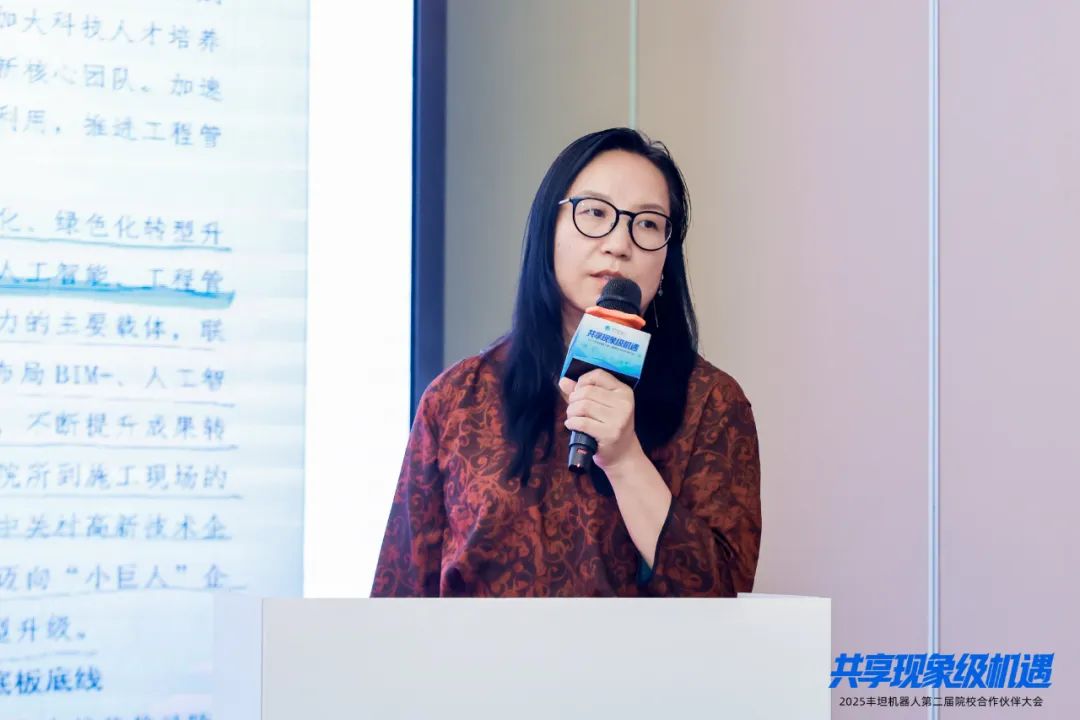 Wang Huijie, Deputy Chief Engineer of the Fifth Company of Beijing Construction Engineering Group and General Manager of Beijing Shouqi Technology Co., Ltd., delivered a keynote report Exploration and Practice of Construction Robot Application, sharing the application cases and development thoughts of Shouqi Technology's construction robot projects. She said that relying on years of accumulation of experience in digitalization and labor management, Shouqi Technology has achieved model innovation in the field of collaborative operation between industrial workers and intelligent robots, and can currently provide full-process services of "equipment + workers + management". Wang Huijie emphasized that the introduction of construction robots will redefine intelligent labor construction. It is not about replacing humans with robots, but enabling every worker to become an intelligent construction engineer.