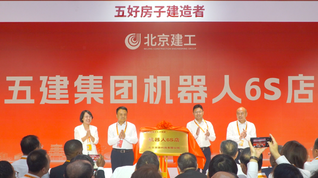 On September 10, the 2025 China International Fair for Trade in Services (CIFTIS) officially opened. At the opening ceremony of the Beijing Construction Engineering Group (BCEG) exhibition area at CIFTIS, Lu Gang, Secretary of the Party Committee and Chairman of BCEG, Mi Xiliang, Deputy General Manager of BCEG, Zhu Dedong, Chairman of the Fifth Construction Group, and Zuo Huiping, Secretary of the Party Committee of the Fifth Construction Group, jointly unveiled the "6S" store of the robots of the Fifth Construction Group of BCEG.