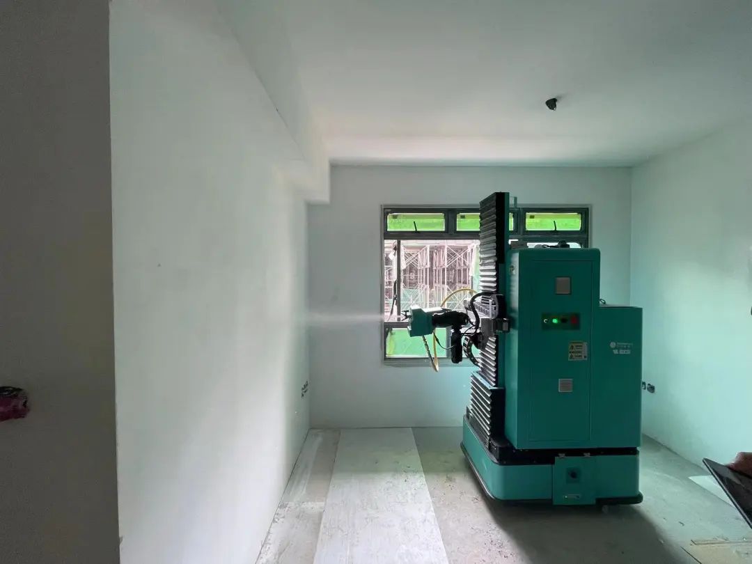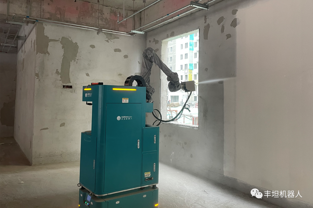 正在对施工墙面进行自动化喷涂的丰坦机器人